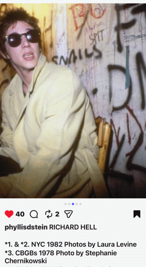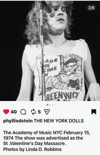 David Johansen in 1974!! I love his T-shirt! It is so beatnik: “I made the scene in Greenwich Village”. (I did, too, baby, I did, too!! Just a few years later…)
