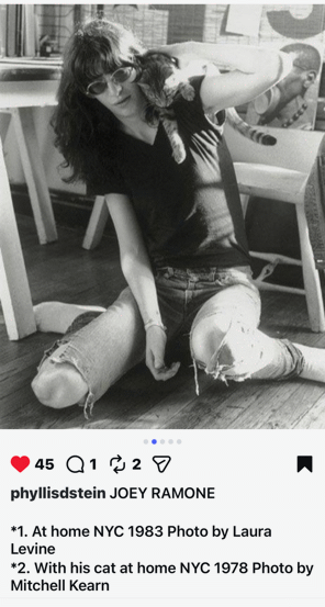And here’s Joey Ramone, at home with his cat in NYC in 1978!