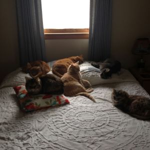 Clockwise from top left: Tommy, Huckleberry, Daddycakes, Doris, Weenie, Lucie. (I love the dramatic pose taken by Daddycakes here! Click to enlarge.)