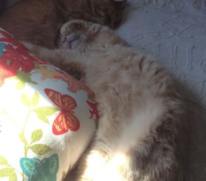 My cats, however…. Man. At the absolute very moment the meditation was beginning, they got into a truly horrific cat fight. They have never done that before. It was not only alarming, but they brought it right into my bedroom, under the bed I was beginning the meditation on. It was really too weird. But eventually they settled down.