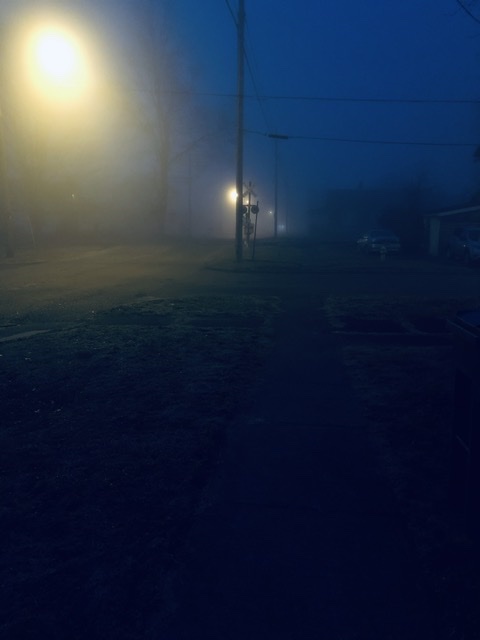 But I was so indescribably thrilled to finally see Chesterfields for sale in Ohio again — and on such prominent display in the gas station in Crazeysburg — that I automatically asked for a pack. Then I paid for it and took it, along with my jug of milk, to the car. Got in the car. I was in such great spirits! There were Christmas lights on all the houses up & down the street, and strung all over the fence in the town square (which is sort of a triangle). The black night was frosty but super clear — all the stars were shining.