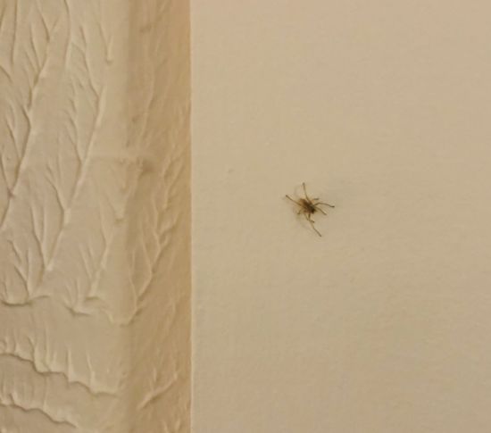 This is another spider living in my bedroom — along with his shadow — but he’s not new. He’s been living on my ceiling since the summertime.