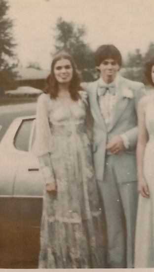 Me with my date, Michael, getting ready to go to my first prom. May 1977. (It was his senior prom.) We’re in my driveway, getting ready to get into his car. I’m 16 here.