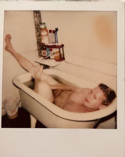 Here he has taken a Polaroid of me!! Same day. I’m 23 here. Paul was 24. (He was gay, by the way, and died from AIDS.) I am tall, too, so I never fit in the bathtub, either!!