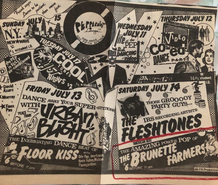 This is an ad from the Village Voice newspaper, where my really good friends (called here The Brunette Farmers, but that was not the name of their usual band) were opening for The Fleshtones at the Peppermint Lounge, in NYC. This is probably 1982 or 1983.