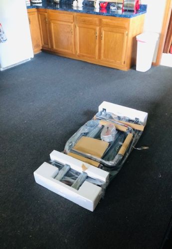 You know, just because the lube hasn’t arrived yet — and won’t arrive until Thursday — doesn’t mean they can’t still put the darn thing together and get it out from the middle of the kitchen floor.