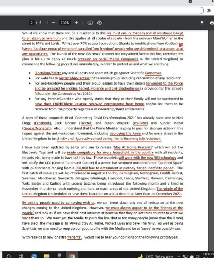 And this next piece, is a tough call. Is it a redpill, meant to cause absolute panic and scare the shit out of you so that you finally wake up and fight back? Or is it an actual warning (which will scare the shit out of you and hopefully wake you up and make you fight back)? Here is the page of the document — U K headed for permanent l* ckd *wn in three weeks, with mandatory va xes — refusing to be va x ed equals having your children permanently removed from your home, and having the deed to your home confiscated. Plus much more. It is followed by a video of the document being read aloud, in case you can’t read this too well.