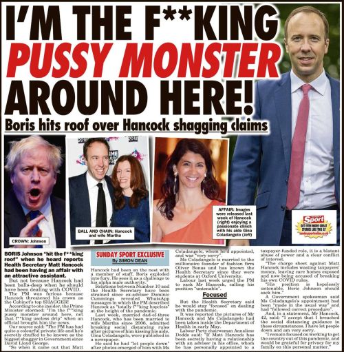 I’m sure you know by now that M * t t Han co ck resigned yesterday because of inappropriate C*VID behavior (however, had it happened during a non-scam d emic, it would have been totally suitable).
