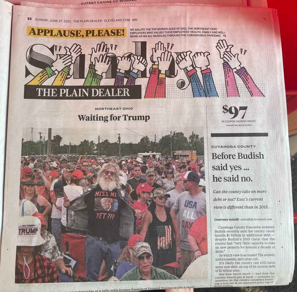 It helped to immediately center me and get me back on track. Even though I did notice that the NY Times headlines had nary a mention of Tr **p’s rally last night (!!), however, Richard Citizen Journalist on t e le g r am posted photos of the headlines from 3 Ohio newspapers this morning, with photos from T r **p’s rally all over them.