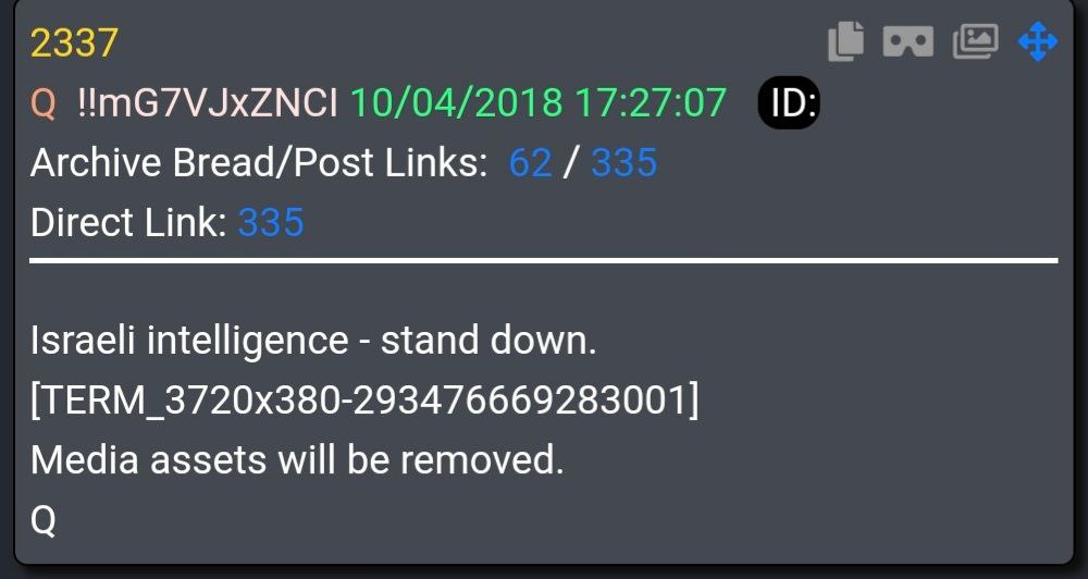 “The Ending Israel is last has so many meanings. Read the Israel, Mossad, Israeli Intelligence, MSM drops. Honey Pot Operations Satellites knocked down, MSM, Libel Laws, Big Tech, Big Pharma etc