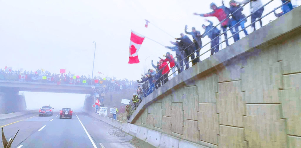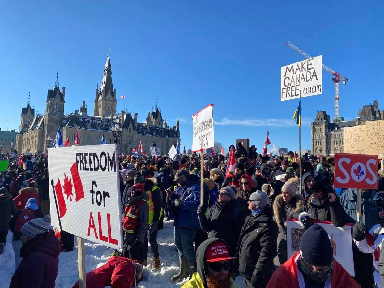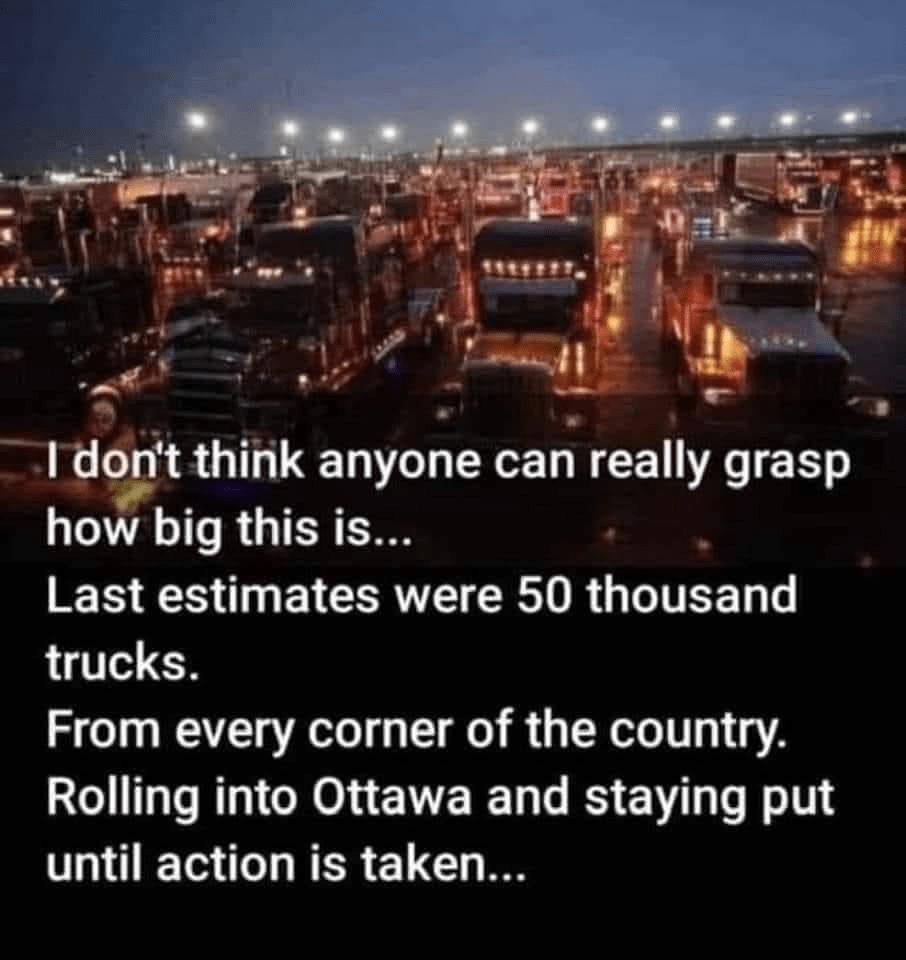 Will the Canadian government resign as Trucks block city? Will Truckers travel on to DC? Will this cause B*den administration to collapse without a shot fired? Will constitutional action with demonstrating bring about end of tyranny? Or do military have to become overt?”