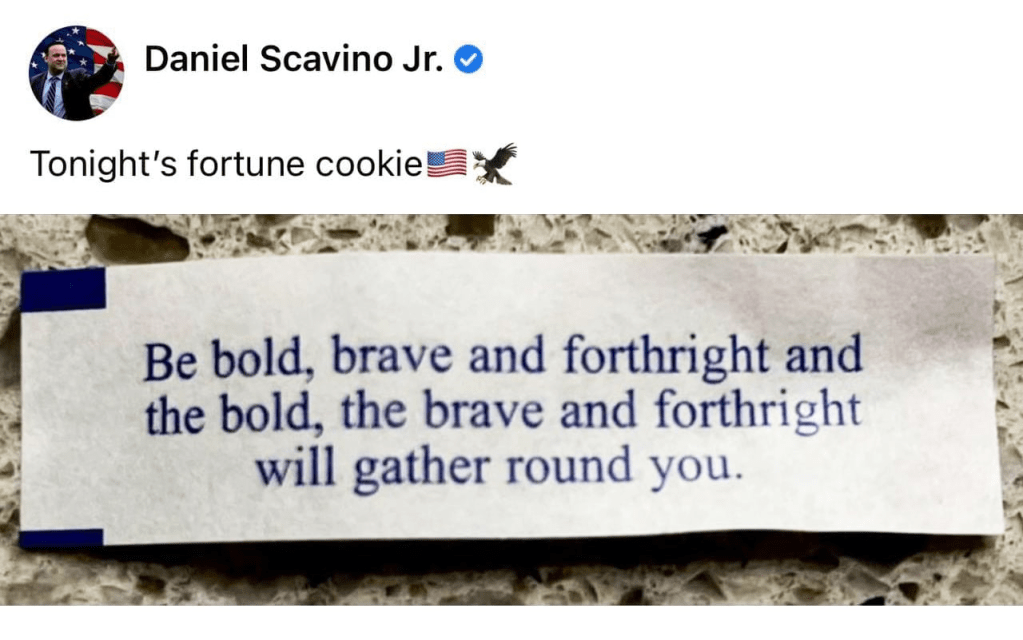 And S c a v in o posted another Orange Man Bad comm on t w * ttter and Inst a gram: