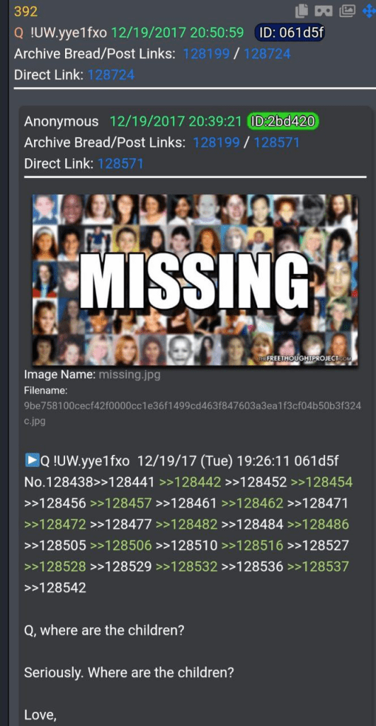 [For newbies: [Q] and “Anons” are not one thing. They are separate. There is no “[Q]Anon”.]
