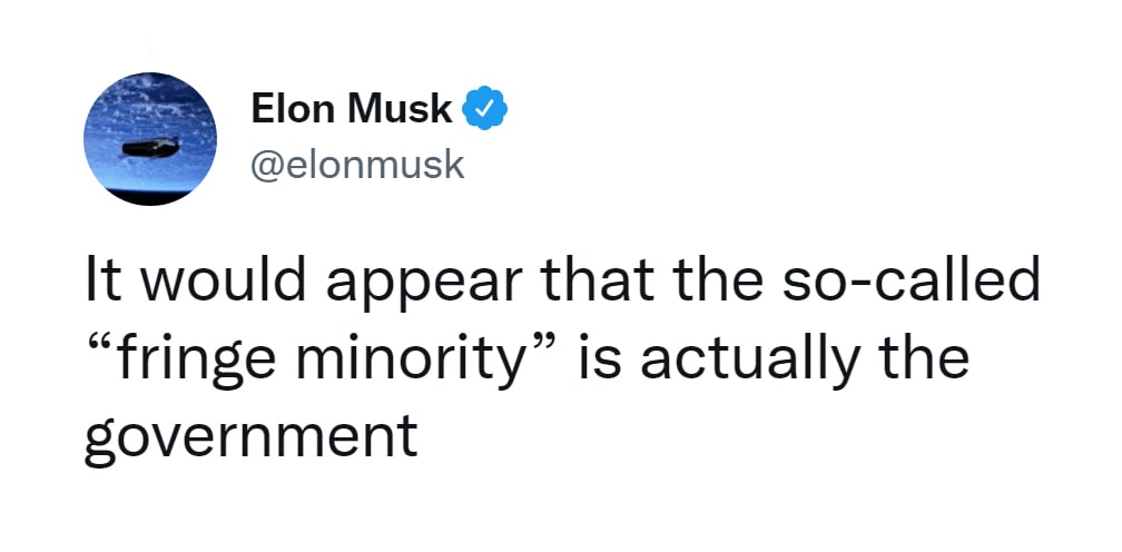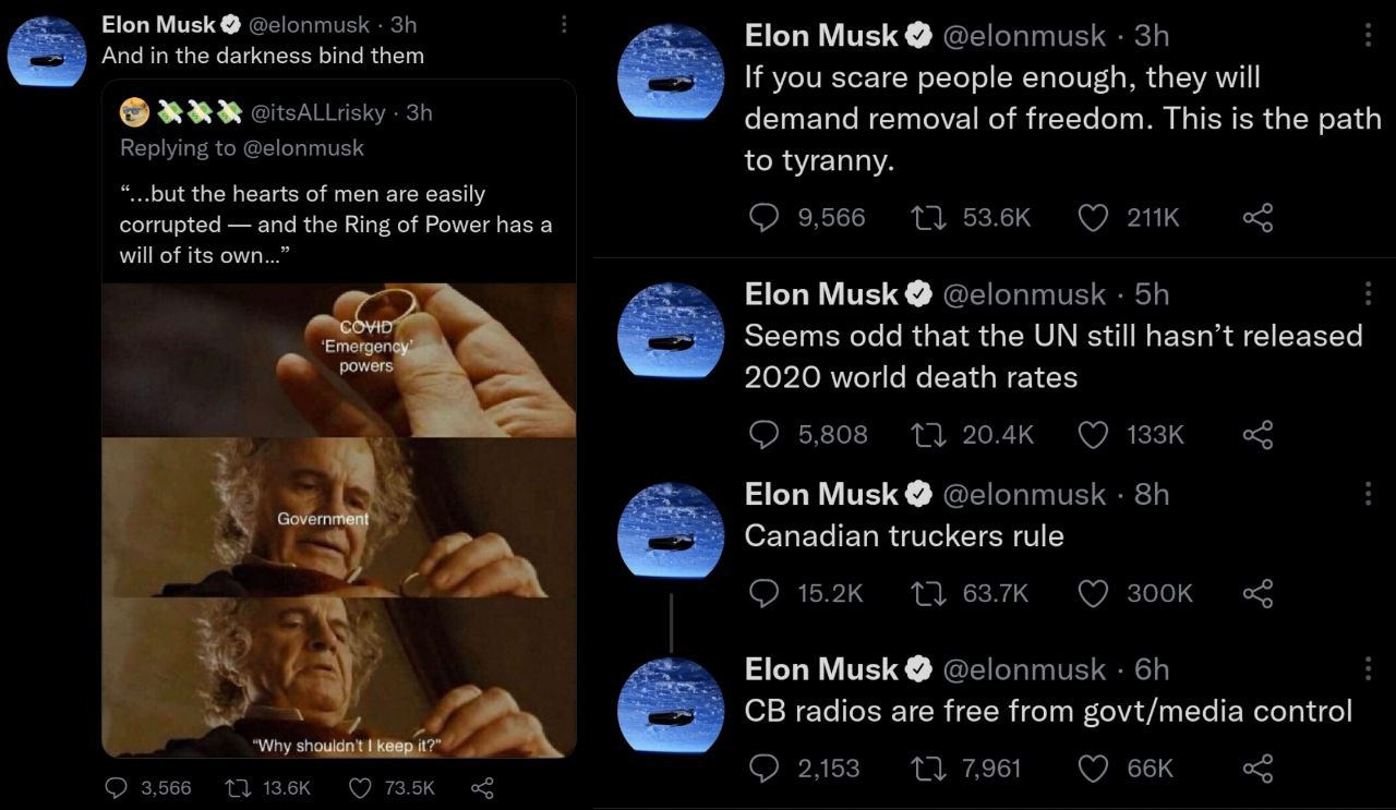 From il donaldo tr **po’s te le g ram channel. A re-tw**t from E lo n M * sk. (And the only reason I found it of interest is because, clearly, E l o n M* sk is now being utilized to try to wake people up).