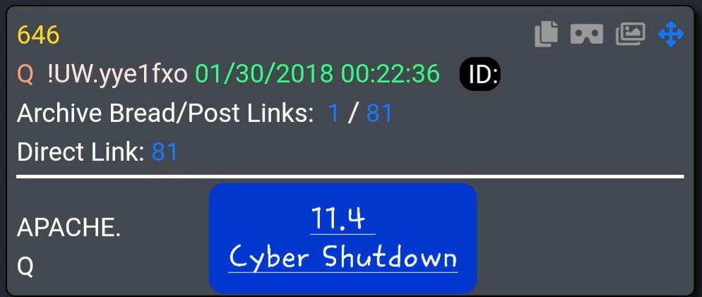 “So you know 11.3 in the Law Of War Manual has been activated/passed on the Inauguration 1 Year Anniversary. 11.4 is the major one in regards to the SHUTDOWN and the very end of C* VID ^^1 9.