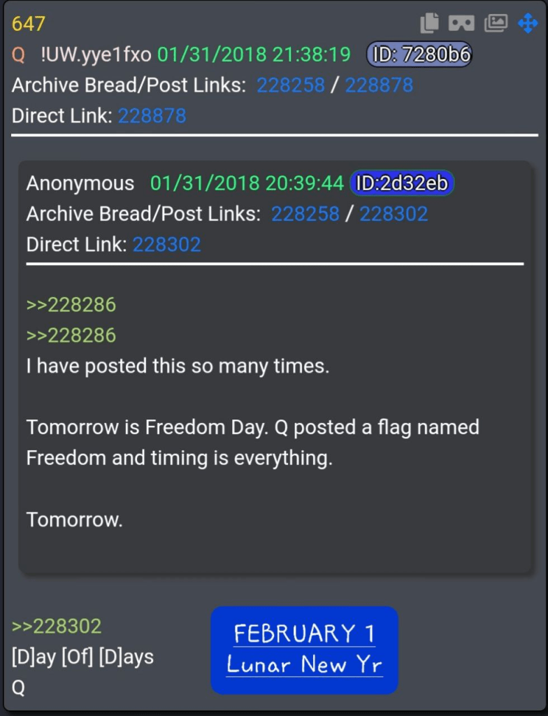 Some things that come to mind are they thought it was coming last Friday, 2 days ahead of schedule, Election + 1(i wonder if that is Inauguration + plus 1 week) but the biggest of them all is that POTUS said very frequently that CH Y NA will pay. You know FEBRUARY 1 is Chinese/Lunar New Year and they celebrate that for 2 weeks. Lots of fireworks.