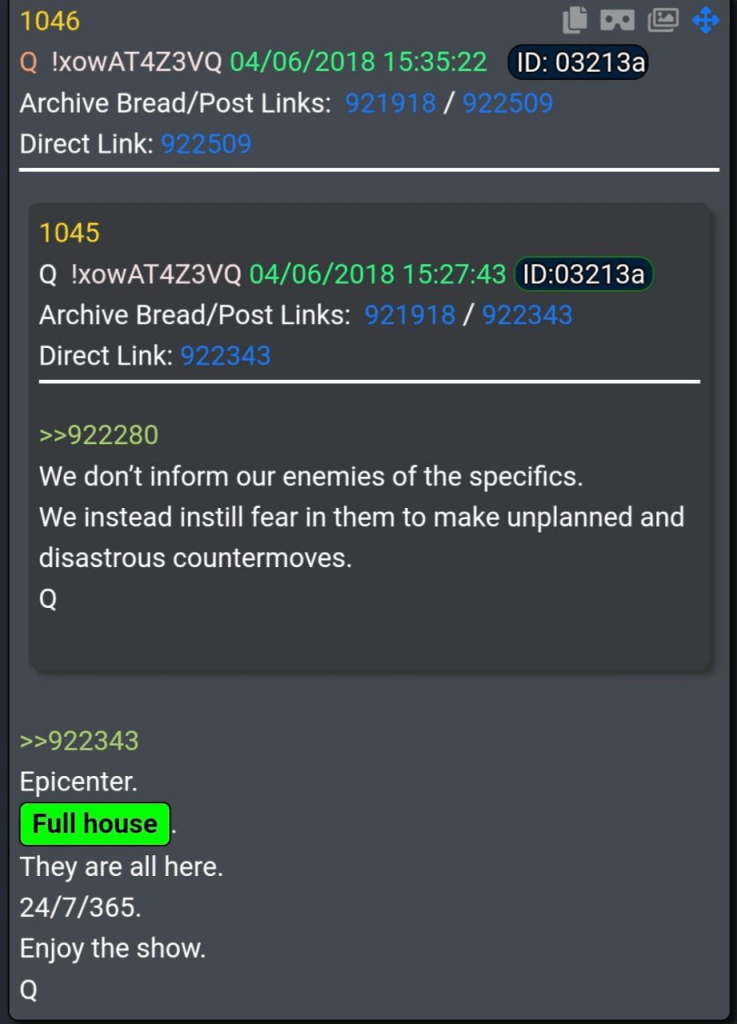 Tr **p’s third ‘orange’ post again had 17 orange emojis, and the phrase: ABSOLUTELY LOVED THOSE ORANGES, BY THE WAY = 445 = ORANGE JUMPSUIT FOR GUANTANAMO BAY DETAINEES. The timestamp of 10:41 => 141 = [ORANGE = ARREST], confirming the solution path of Tr **p’s ‘orange’ riddle.”
