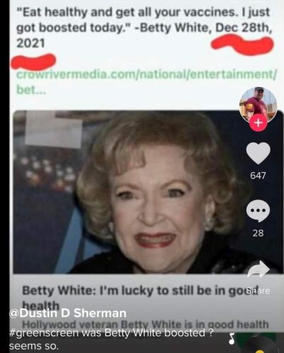 Regarding Betty White dying at age 99 — I don’t know if this is true, but here ya go: