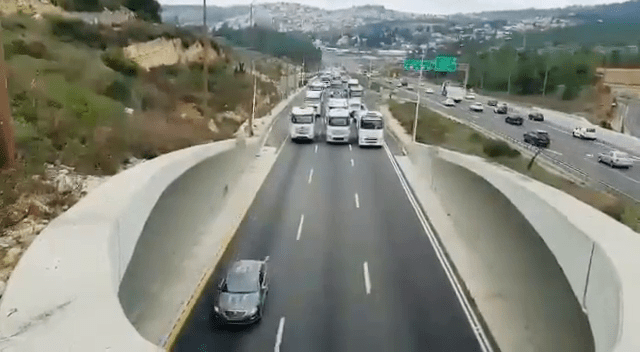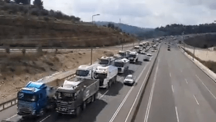 “NOW – Convoy of trucks and vehicles arrives in #Jerusalem, Israel’s capital, to protest C*vid restrictions.”