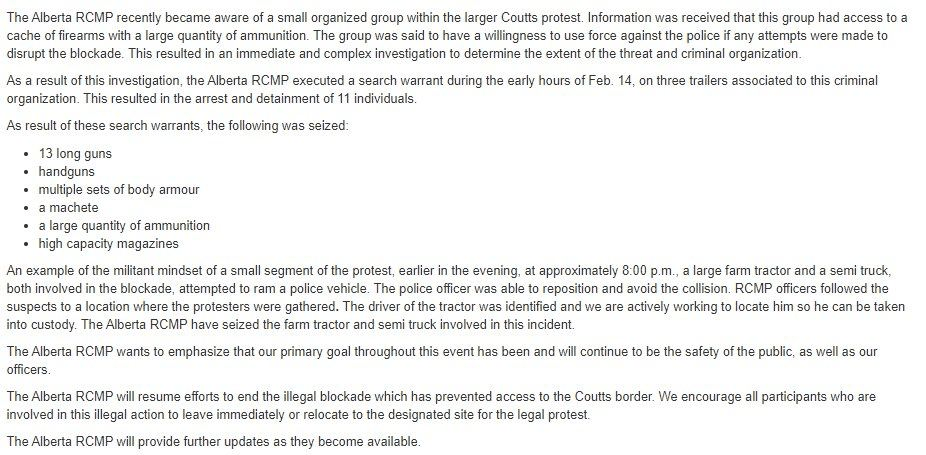 “❗️Canadian police arrest 11 people – seize guns from group linked to border blockade (Reuters)