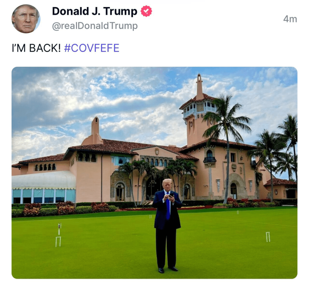 On Truth Social, Trump’s first post: