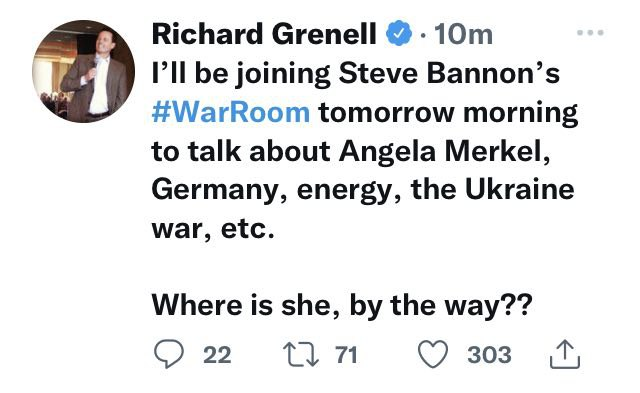 Richard Grenell dropped an interesting comm about Merkel (who was allegedly arrested quite a while ago and replaced by a body double.)