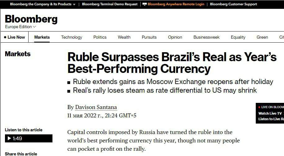 “Dollar falls to 65 rubles, euro to 67 for the first time since 2017 as western currencies fall against the Ruble”