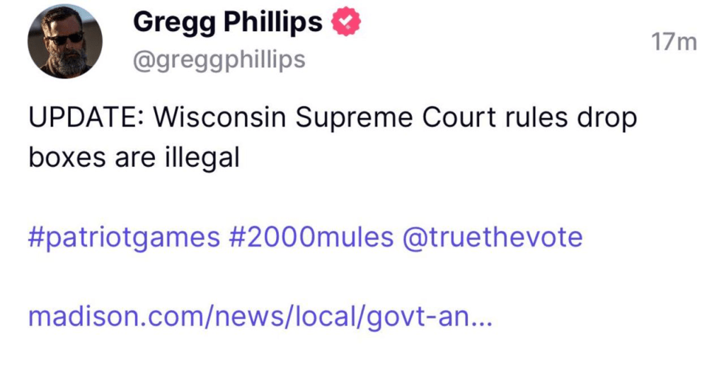 “You now have people in Wisconsin who, according to the Supreme Court ruling, voted illegally in the 2020 election if they voted through a drop box.