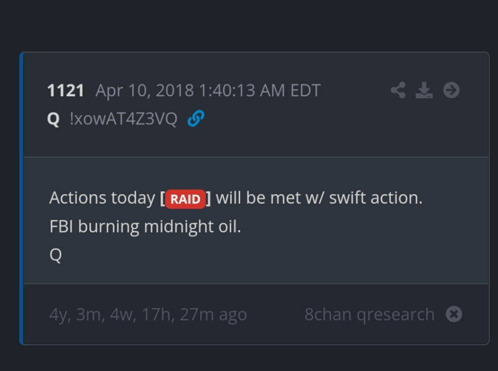 This appears to be actual news, though — from Q the Storm — includes video: