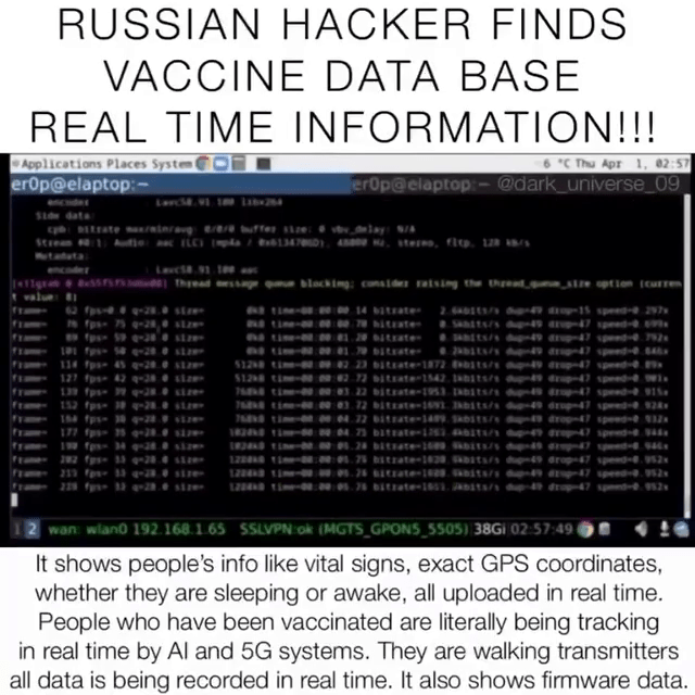 “Russian hacker finds vaccine database real time information.