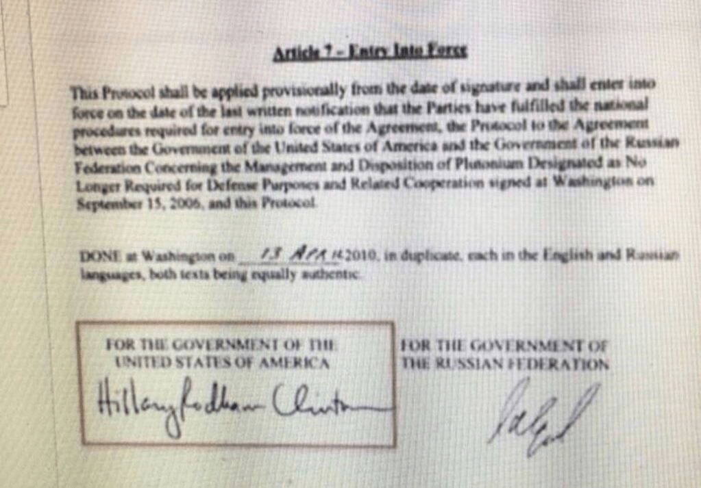 “Hillary’s Uranium One document with signature.”