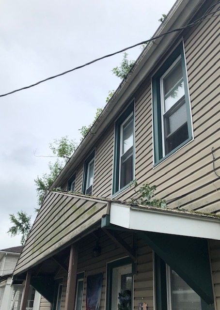 And now that my beloved — and enormous (!!) — tree is gone, I discovered a zillion more trees growing in the top gutter! So now the gutter cleaners are on their way…
