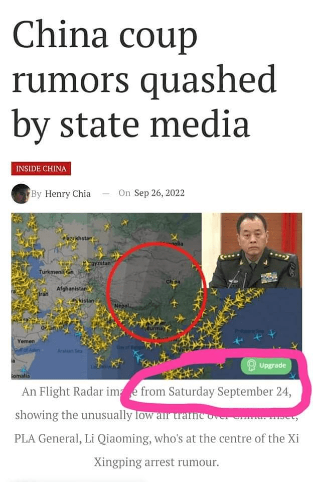“What REALLY happened with Xi? What happened on the 24th? 😉🤔 Why were over 9,000 flights cancelled across the mainland on the 23-24, and bus/train service cancelled surrounding Beijing, which has yet to be explained? Why was there an 80km long line of military vehicles outside of Beijing as well?🤔”