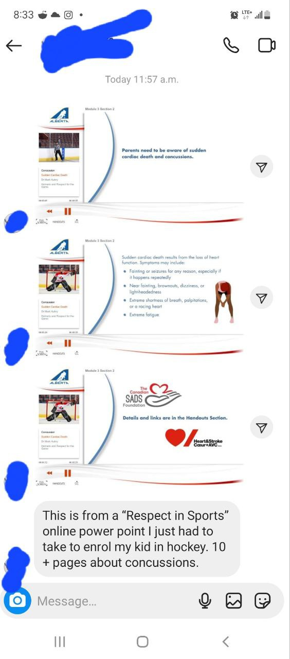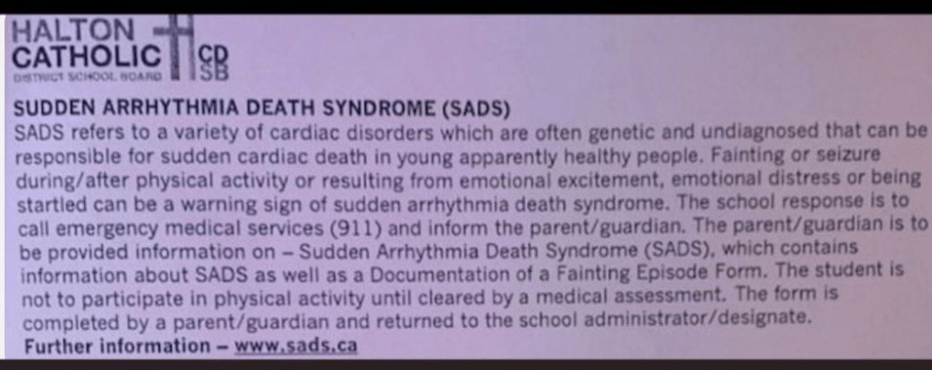 “Now… you cant enroll your child in hockey without being “educated on the risks” (indoctrinated with excuses) for SADS. The new normal for your previously healthy child”