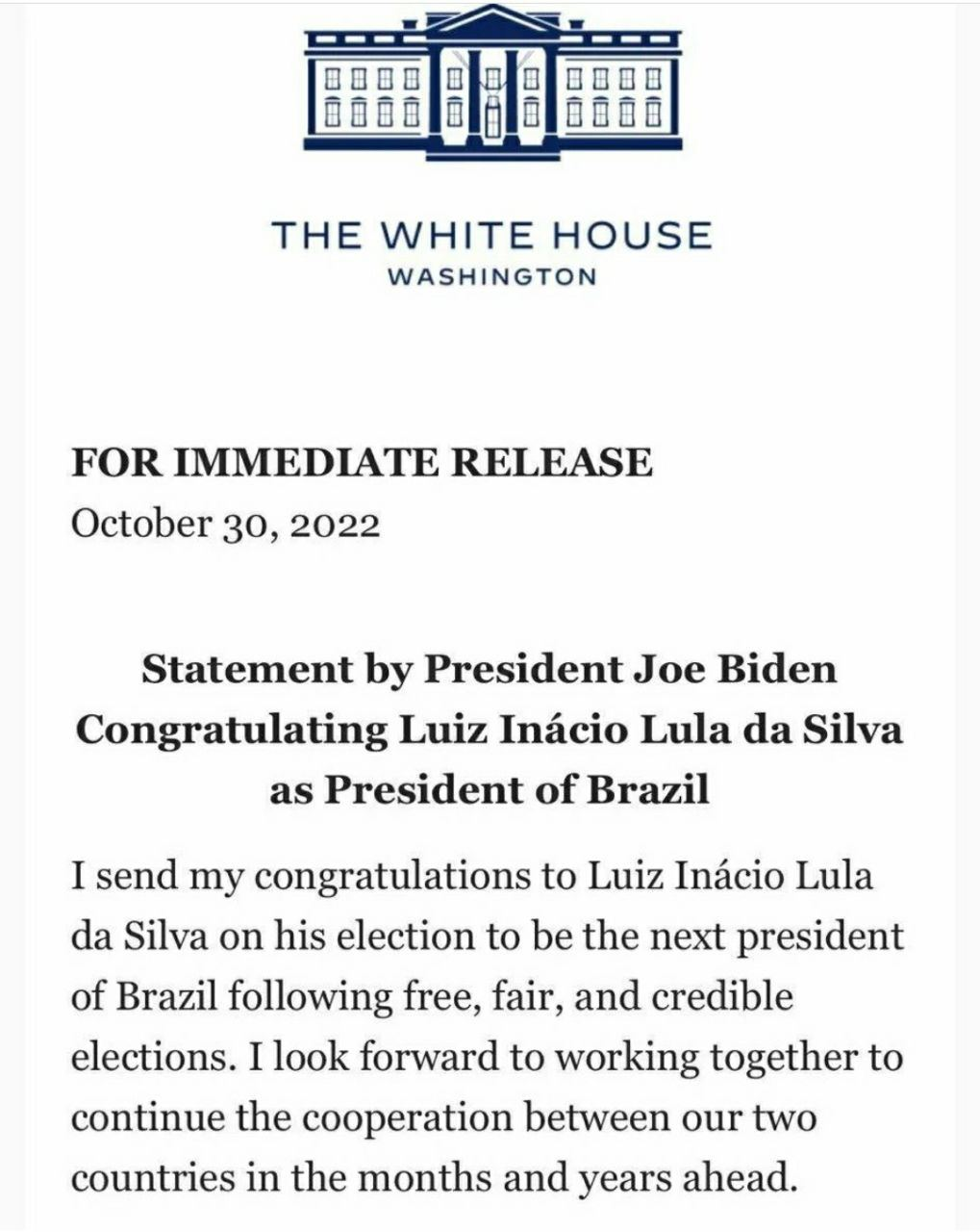 “As if someone in the US can claim the Brazil election, which was just completed a few hours before this statement, was “free, fair, and credible”.