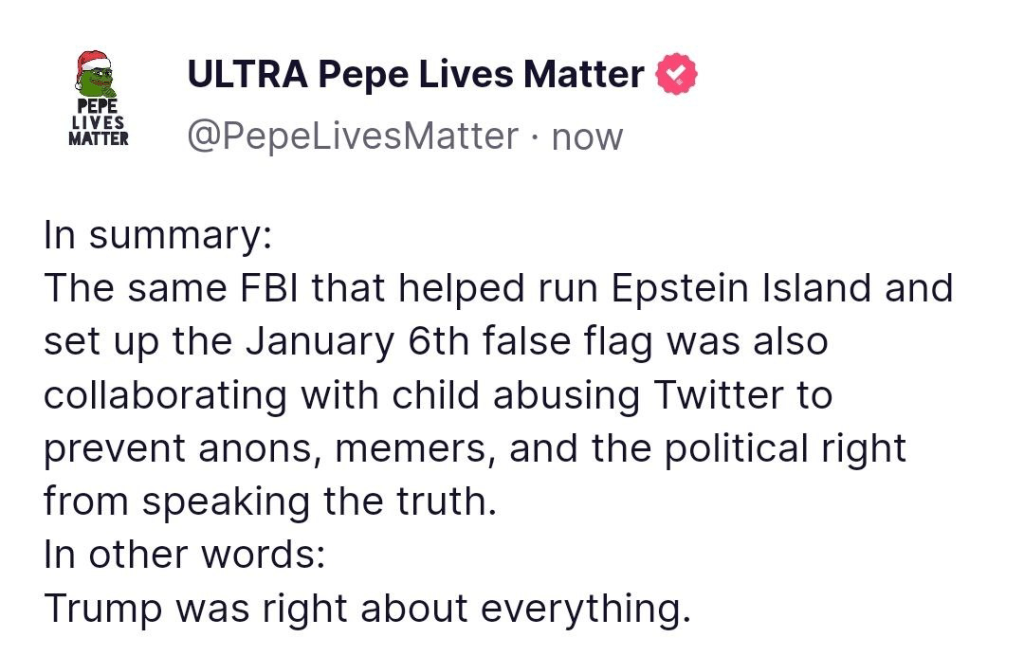 Remember, about a week ago, someone texted me intel about Trump’s arrest happening on Dec. 19th? And that the military would begin sweeping arrests afterward, etc.? We’ll have to see, gang.