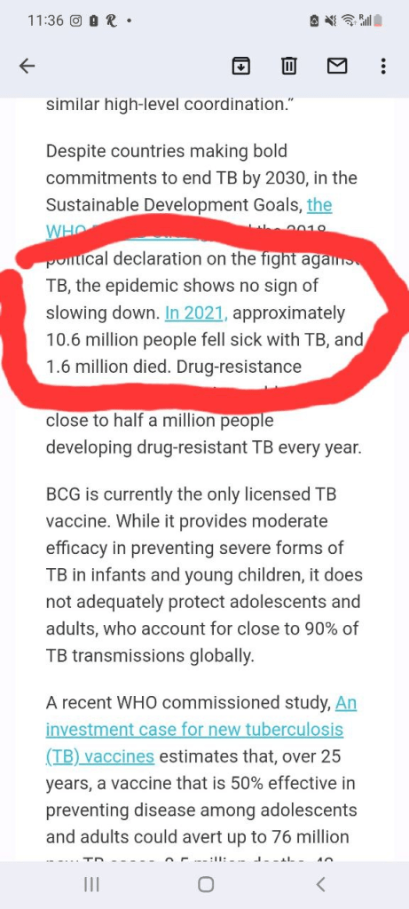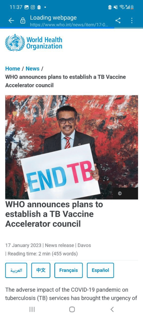 “World WARNING. WHO planning new Tuberculosis VACCINE campaign.”