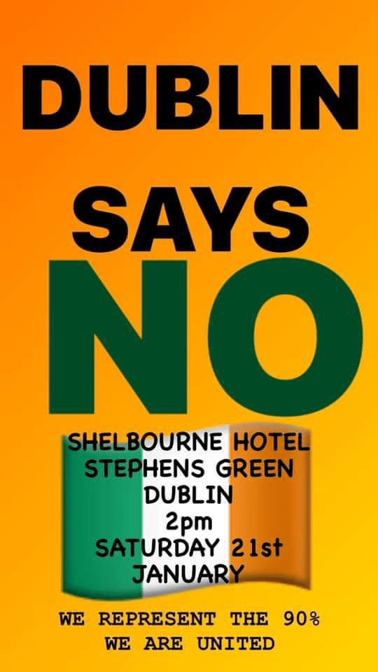 “This is one of the most important protests you’ll ever attend to push back against a major influx of state funded illegal immigrants from entering the country. Starts at 2pm outside the Shelbourne Hotel, St. Stephens Green on the 21st of January 🇮🇪”