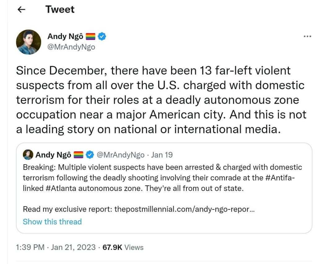 “🌹 🏴 Since December, there have been 13 far-left violent suspects from all over the U.S. charged with domestic terrorism for their roles at a deadly autonomous zone occupation near a major American city. And this is not a leading story on national or international media.”
