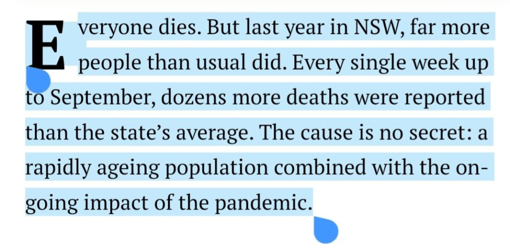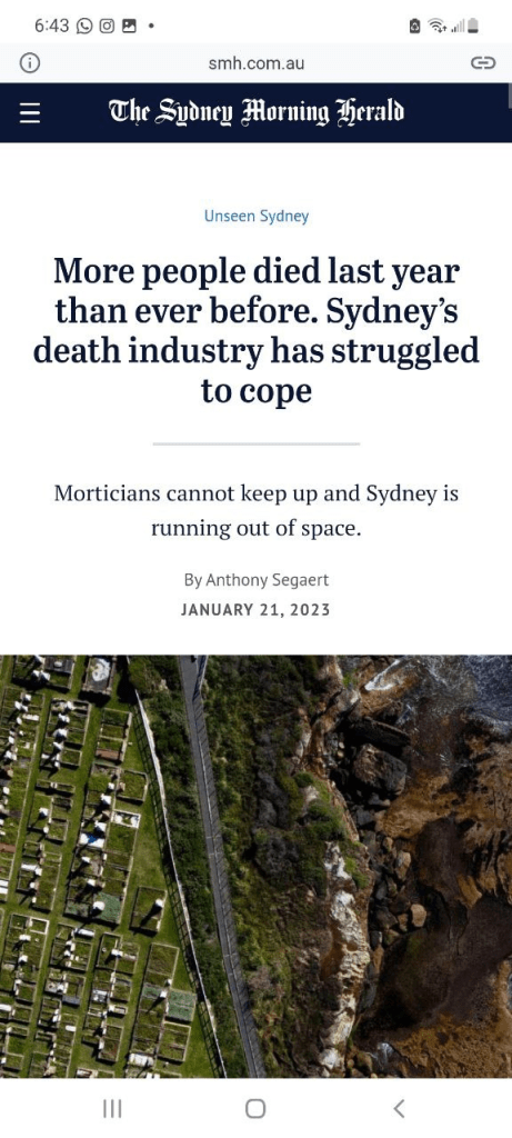 “MORE DEAD THAN EVER BEFORE in Australia. …with 2023 already looking just as bad or worse. The “crisis” is where to put all the JABBED dead bodies…”