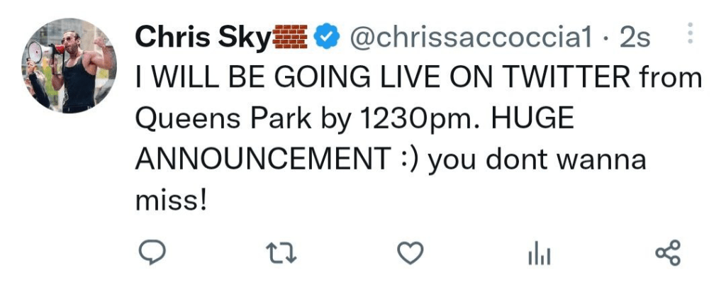LIVE FROM TWITTER 1230PM QUEENS PARK! https://mobile.twitter.com/chrissaccoccia1