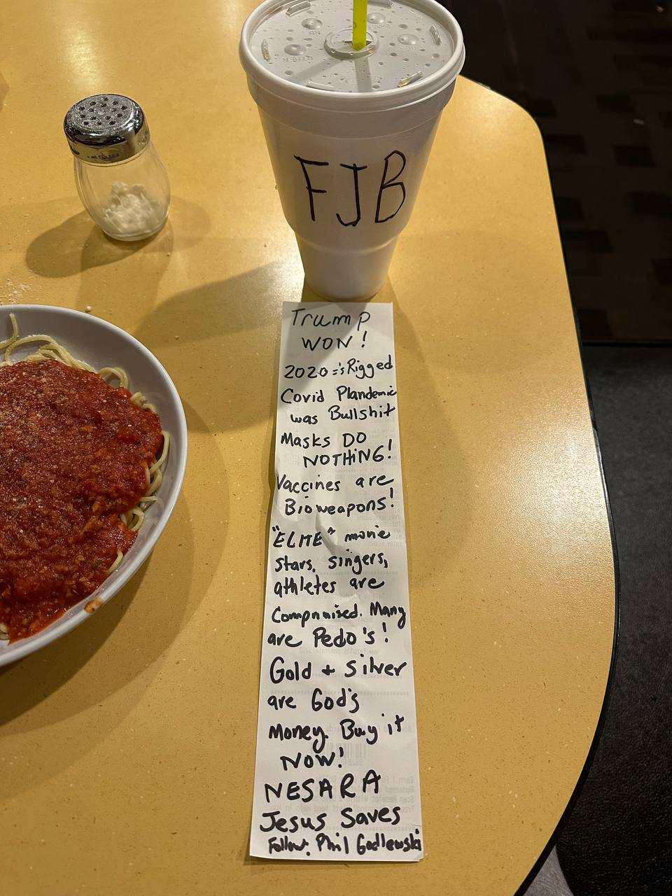 “Todays ‘Redpill Receipt’ at Fazolis.”
