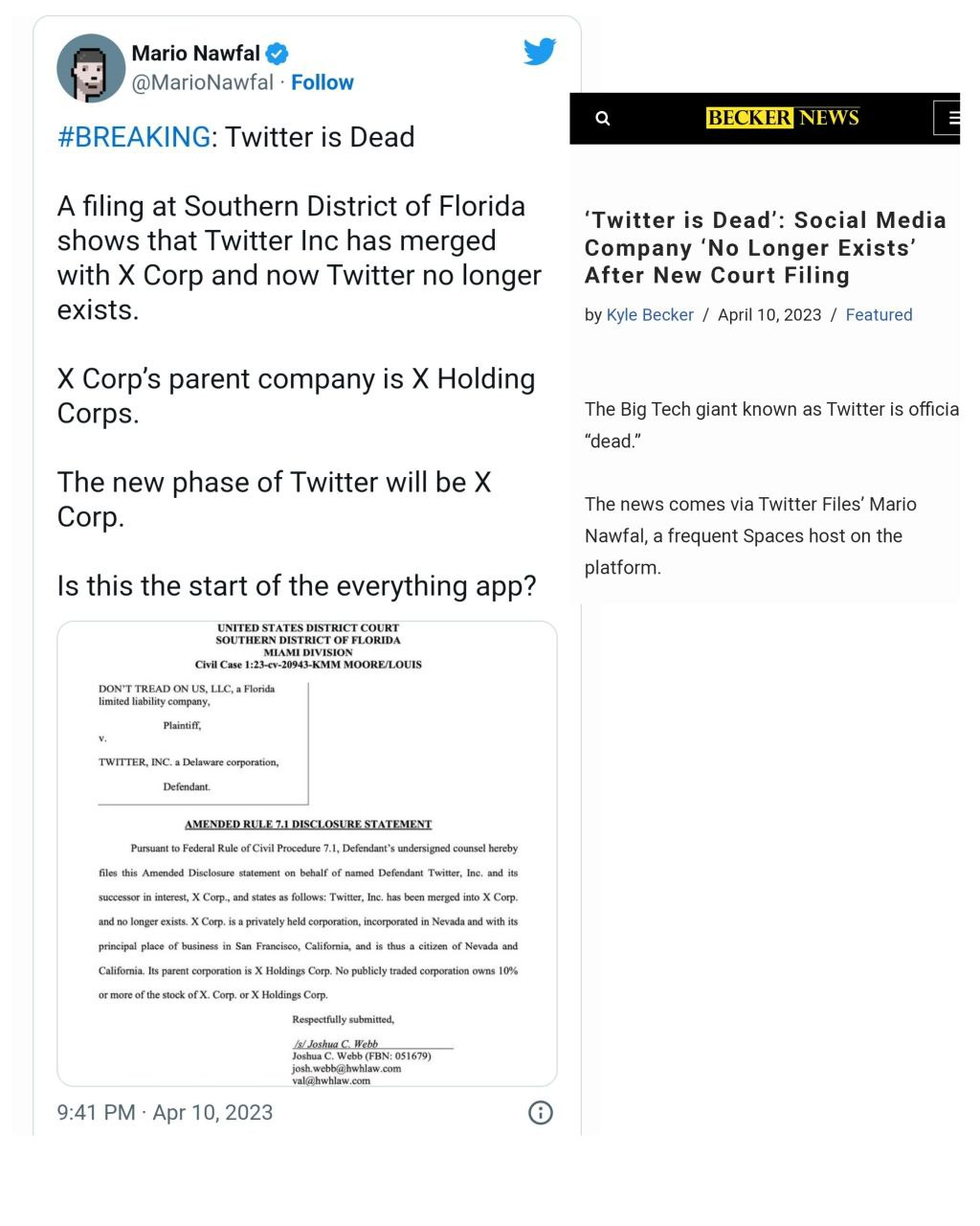 Twitter is Dead’: Social Media Company ‘No Longer Exists’ After New Court Filing”