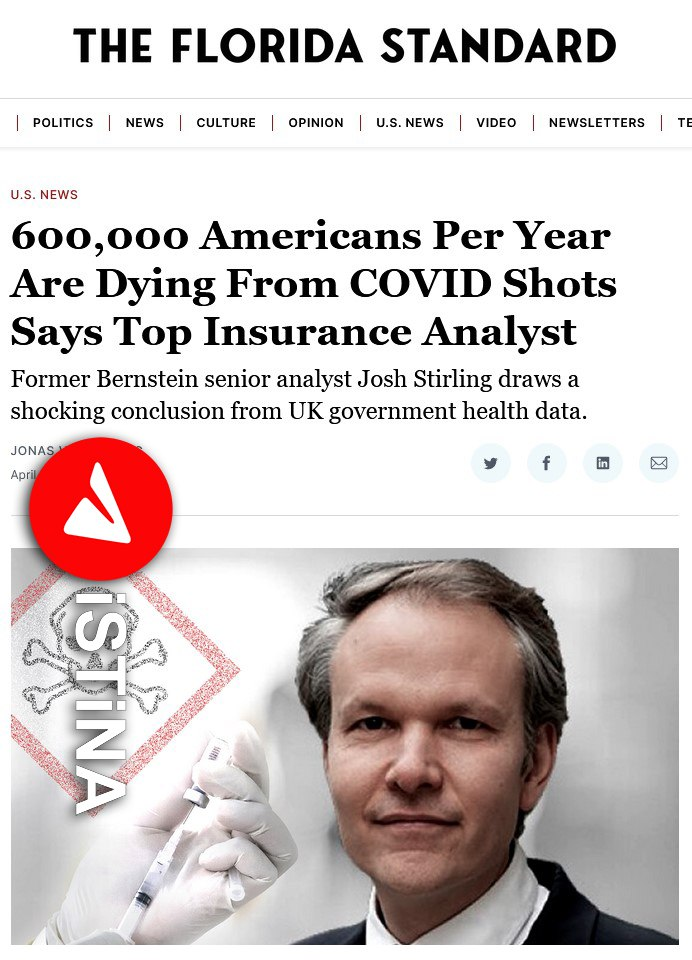 “🇬🇧 600,000 Americans Per Year Are Dying From COVID Shots Says Top Insurance Analyst! Those vaccinated against COVID-19 have a 26% higher mortality rate on average compared to those who declined the jab (https://t.me/iSTiNiTO/1091) – and the death toll is even more staggering for vaccinated people under 50 years old, where mortality is 49% higher than for those unvaccinated.”