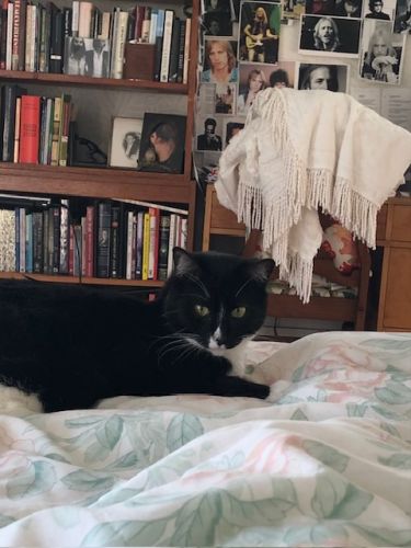 That aside, I adore this little guy. Here he is this morning, on my bed, as the sun was coming up and I was having my coffee: