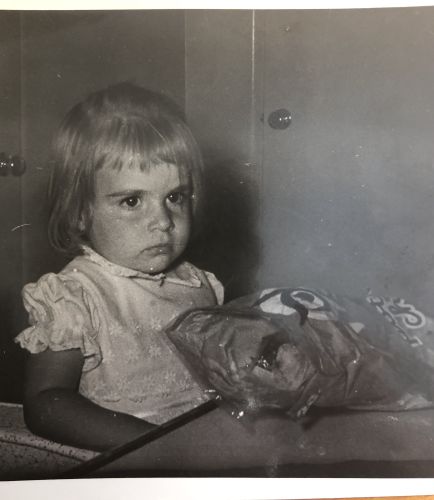 Me, with my dad a bag of potato chips, but my dad took the photo (Cleveland, Ohio, 1962-63):