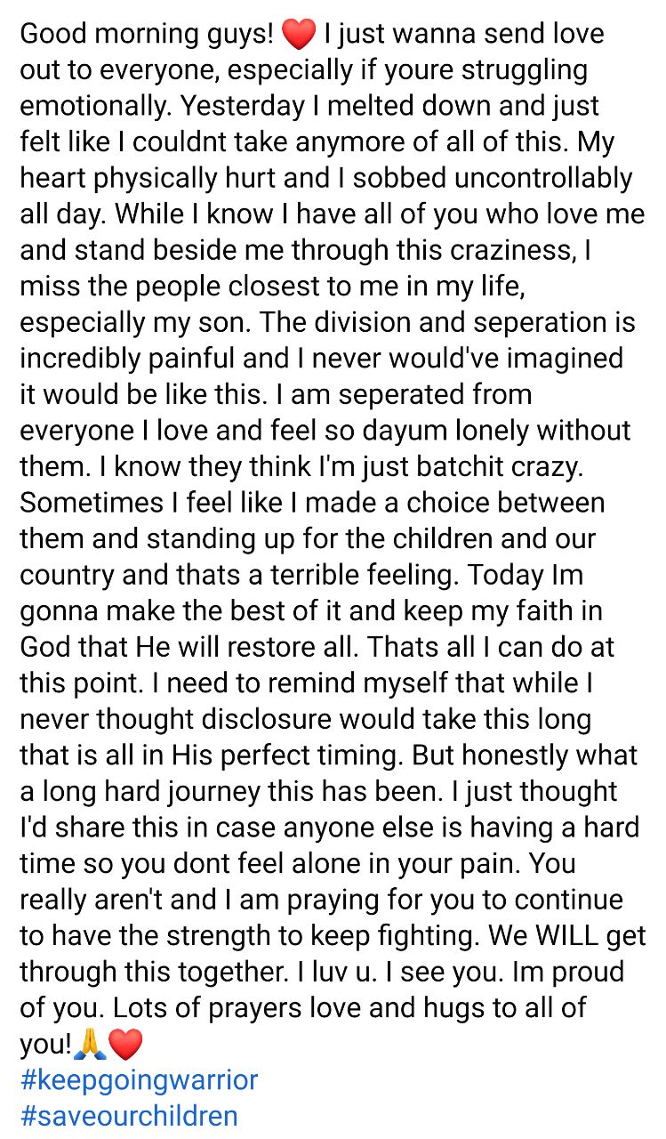 It gets so hard to even get out of bed in the morning. The overwhelming fatigue from 3 years of it. Even though I don’t report on very much of it on the blog anymore, I haven’t left the movement; I still stay on top of the channels, the podcasts, the updates. The waiting is almost as exhausting as all the reporting was. (Almost.)