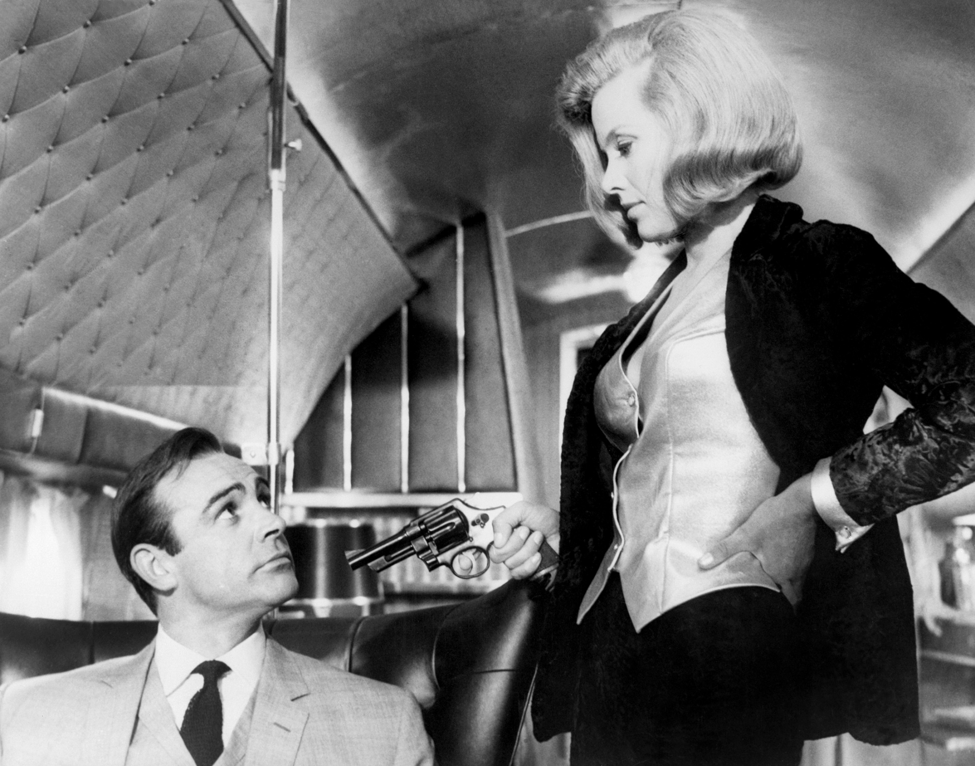 During dinner last night, I watched a really cool episode of The Avengers, from 1964 (Honor Blackman as Mrs. Gale — the Emma Peele character was not in the series yet.) (Honor Blackman is also famous for having played “Pussy Galore” in the James Bond movie, Goldfinger, and “Honey West” on TV!)