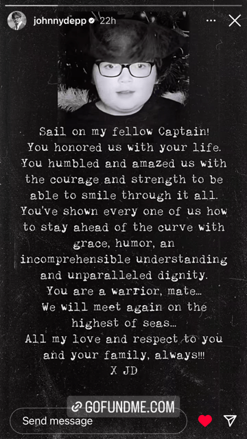 From Johnny Depp’s Instagram page yesterday. A touching farewell: