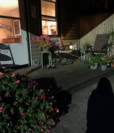 2 photos of fireworks, with a really bright street light also in the shot. And then a photo of my kitchen porch last night.
